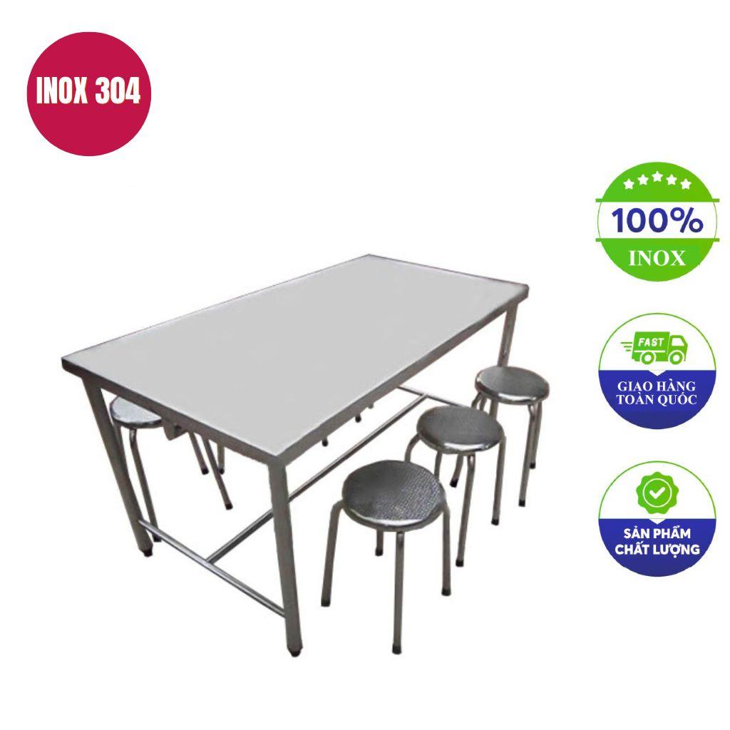 Giới Thiệu Bàn ăn công nghiệp inox 6 ghế 120x60x75cm: Sản xuất tại xưởng, kiểm soát Inox 304