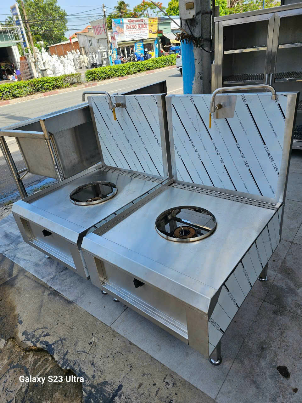 - Cấu hình gợi ý: 2 họng gas công suất cao (tổng thực tế khoảng 60.000–120.000 BTU/h), kiềng gang đúc 500×500, kích thước khung phổ biến 1200x750xC450/850(mm).