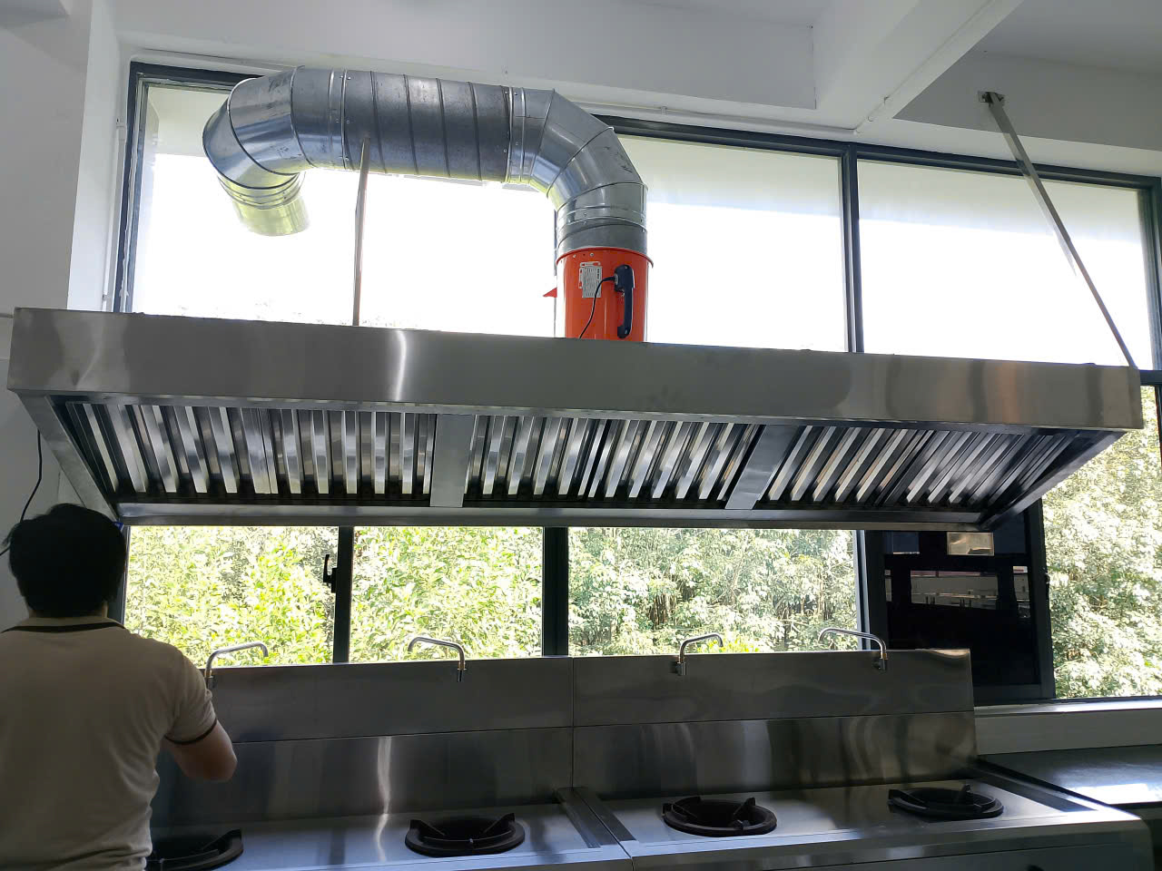 Vận chuyển thiết bị đến công trình, lắp đặt, đấu nối điện nước, gas và hệ thống thông gió.