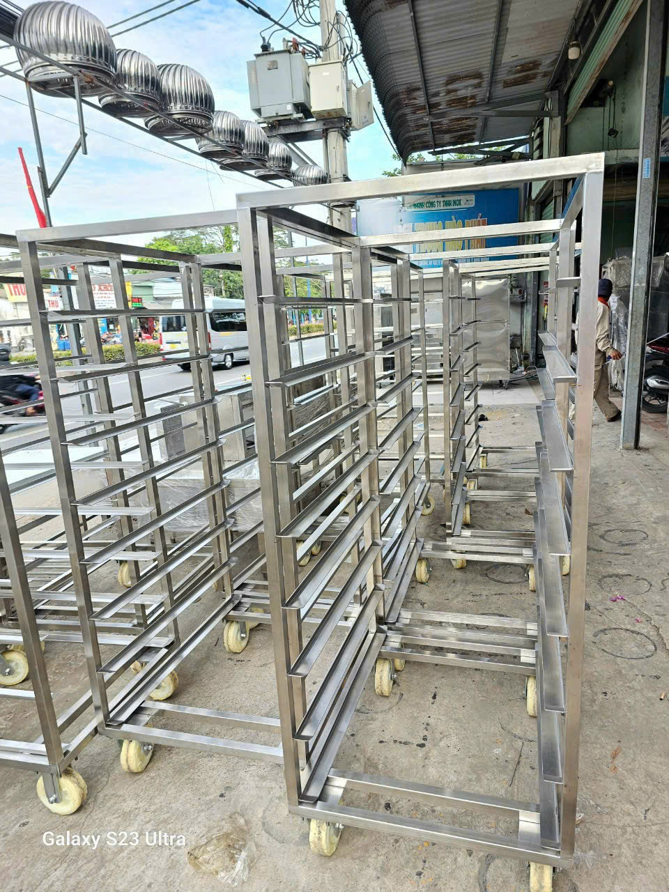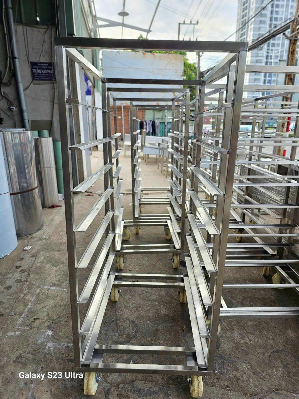 hình ảnh gia công kệ inox 10 tầng có bánh xe