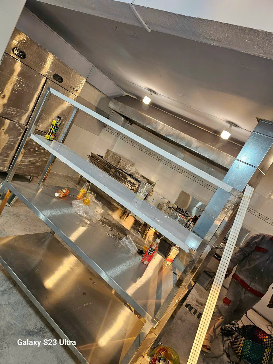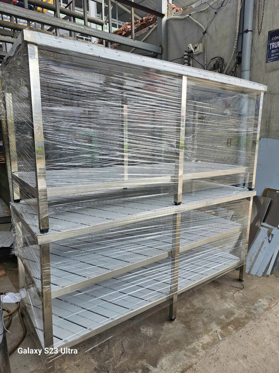 hình ảnh thi công và lắp đặt kệ inox phẳng 3 tầng