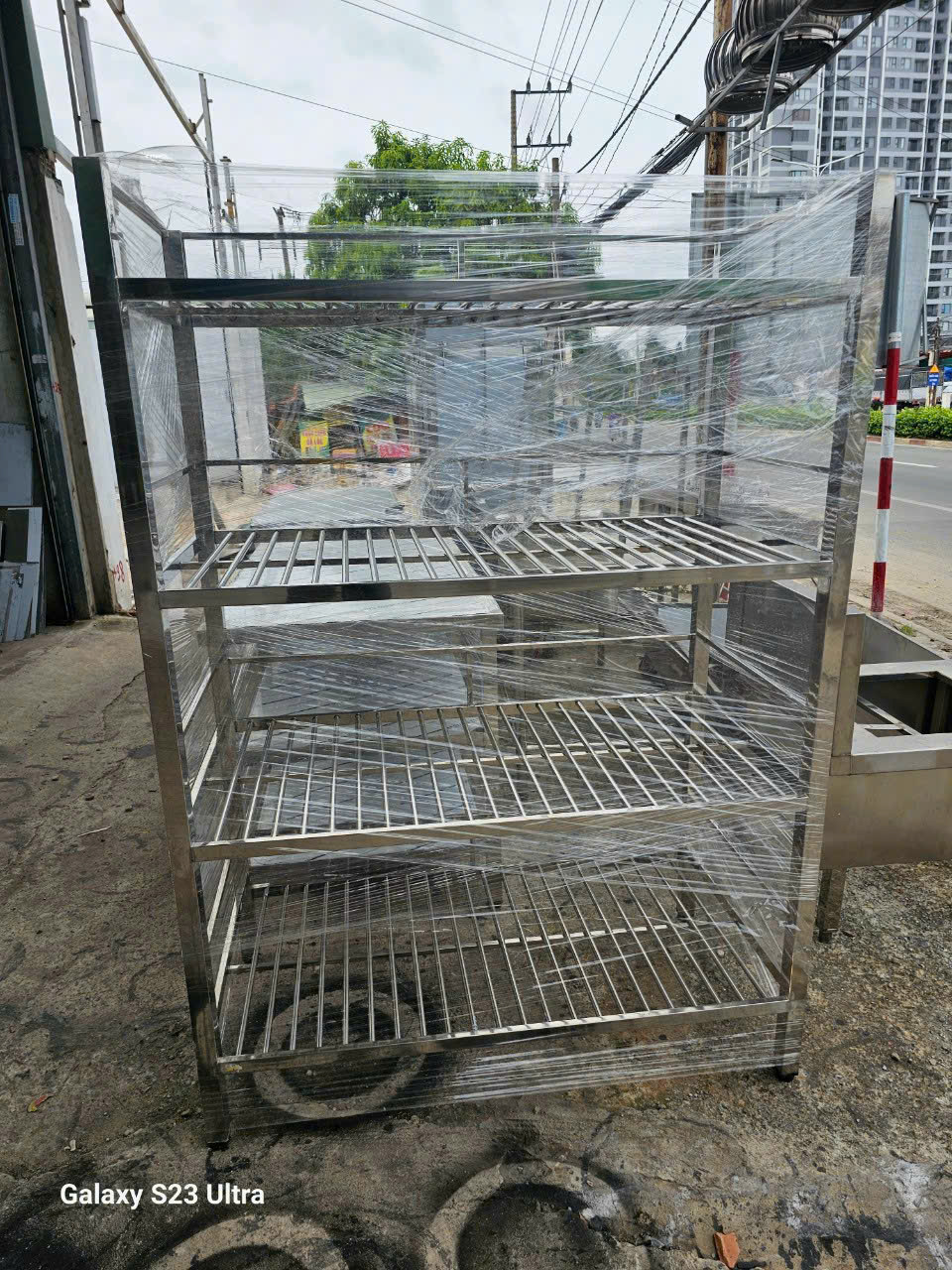 hình ảnh gia công kệ inox 5 tầng có bánh xe