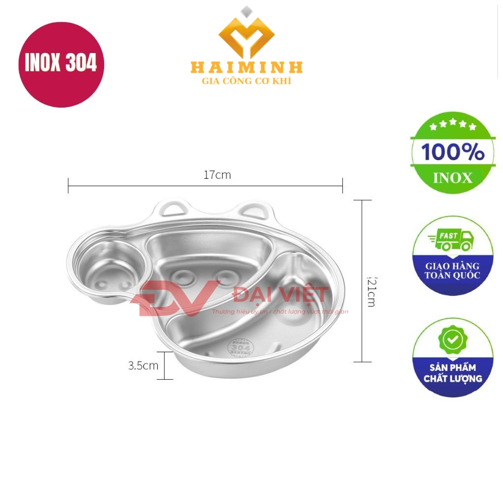 Khay ăn cơm inox 3 ngăn 17x21x3.5cm được sản xuất từ chất liệu inox SUS 304 cao cấp với công nghệ chấn dập CNC hiện đại. Sản phẩm có thiết kế 3 ngăn riêng biệt, các góc cạnh bo tròn an toàn và độ dày vật liệu 1mm đảm bảo độ bền vượt trội. Bạn có thể sử dụng sản phẩm này trong nhiều môi trường khác nhau từ gia đình đến các cơ sở kinh doanh. Với bảo hành 12 tháng từ Cơ Khí Hải Minh, bạn hoàn toàn yên tâm về chất lượng và độ bền của sản phẩm này.