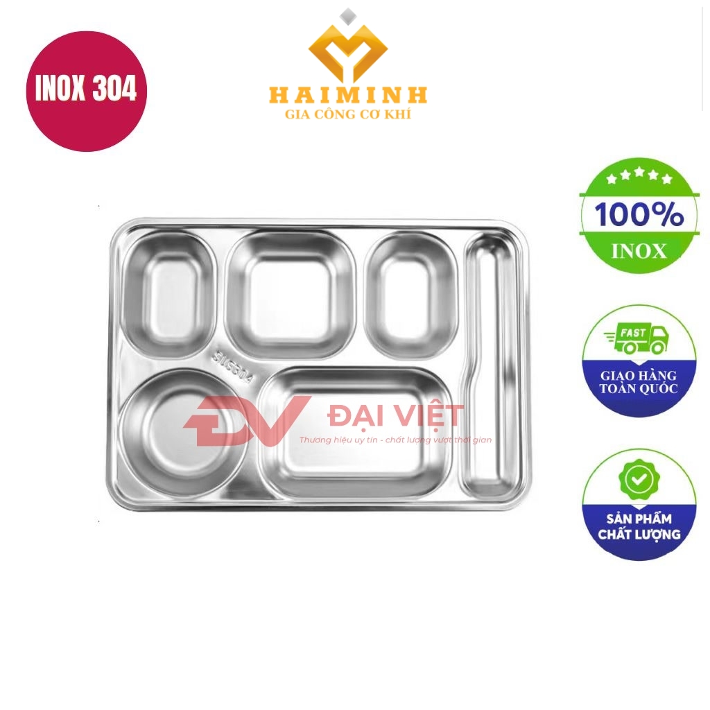 Tên sản phẩm: khay cơm inox 6 ngăn 39,5 x 29,5 x 2 cm.