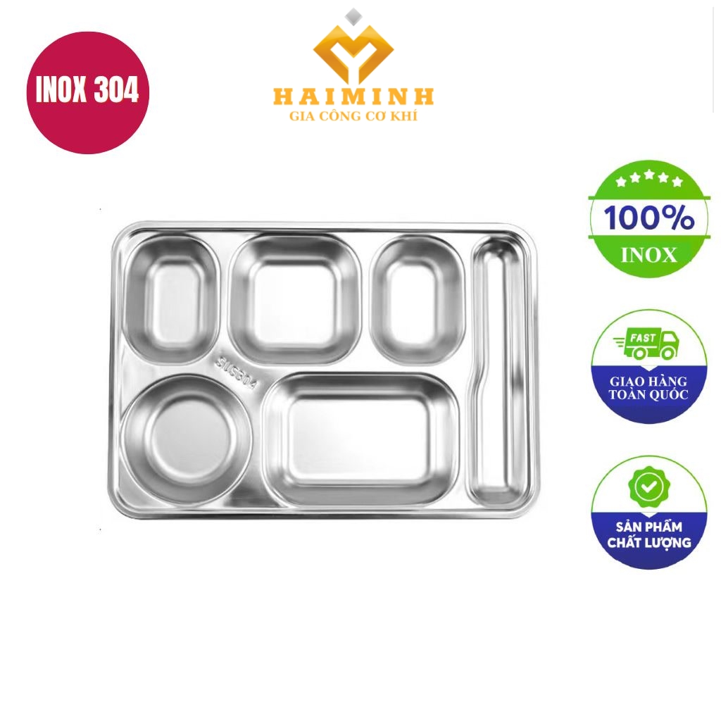 Khay cơm inox 6 ngăn inox 304 35.5x28x2.6cm là khay ăn cao cấp với 6 ngăn tiện dụng. Chất liệu inox 304 an toàn và thiết kế bo tròn tinh tế. Khay này siêu bền, rất thích hợp cho trường học, nhà ăn, quán ăn và gia đình.