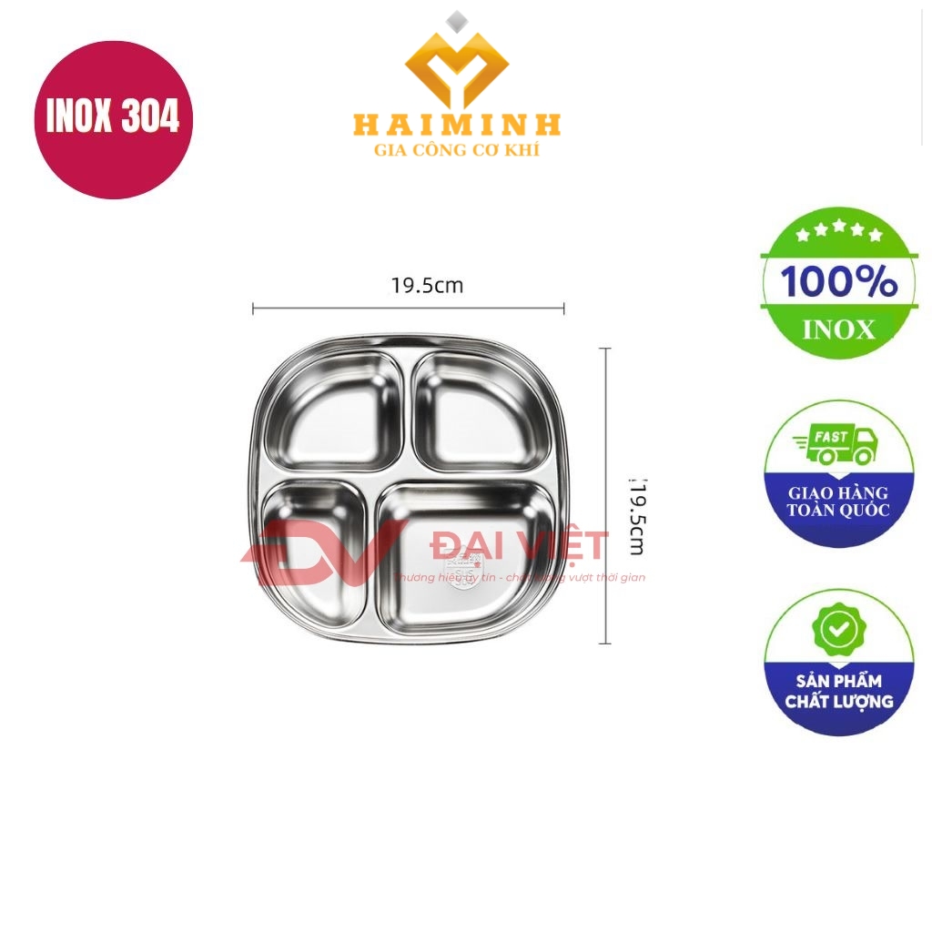 • Tên sản phẩm: khay đựng cơm inox 4 ngăn 19,5×19,5×4 cm.