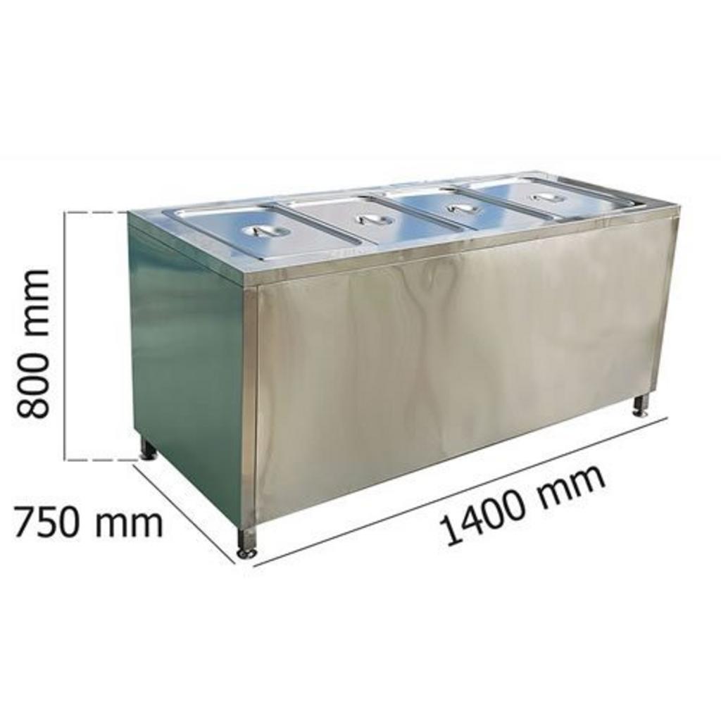 Tiêu chuẩn khay: GN 1/1 (thường dùng cho nhà hàng và buffet). Kích thước tổng tham khảo: 1200 x 700 x 800 mm (R x S x C) cho model 4 khay. Nếu bạn cần kích thước đặc thù, chúng tôi nhận tùy chỉnh để phù hợp luồng bếp và hệ thống phục vụ.