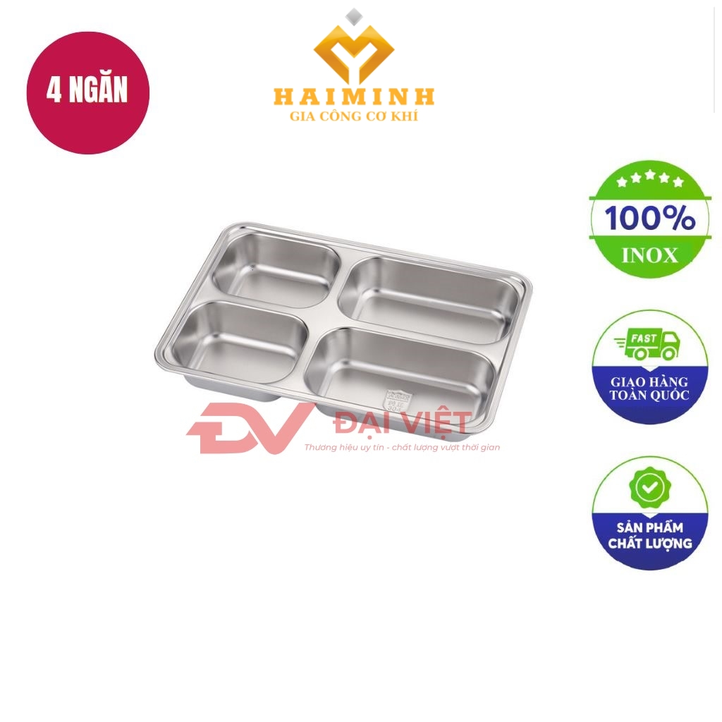 • Tên sản phẩm: khay inox đựng thức ăn 4 ngăn 33,5 x 23 x 4,6 cm.