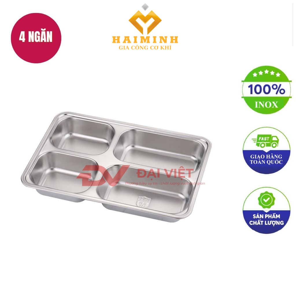 • Tên sản phẩm: khay inox đựng thức ăn 4 ngăn 33x23x3,5 cm.