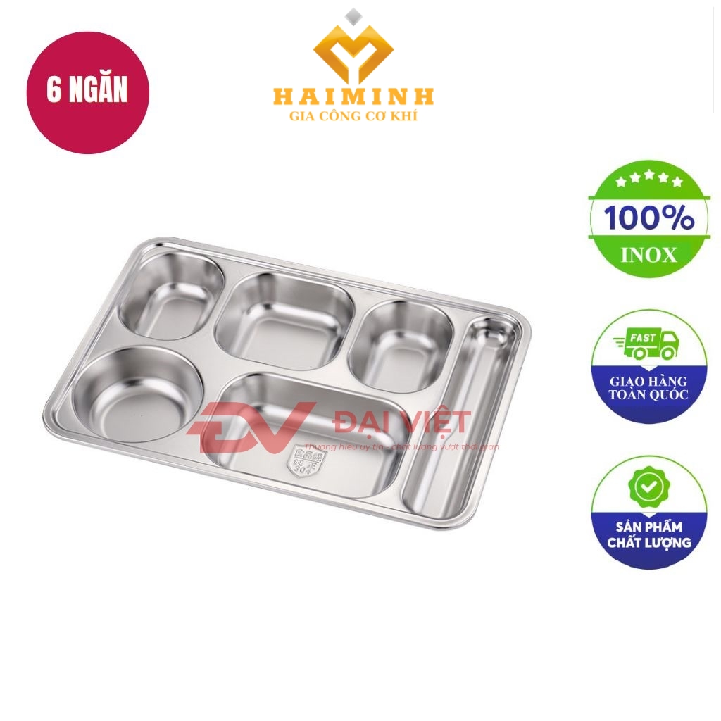 • Tên sản phẩm: khay inox đựng thức ăn 6 ngăn 33,5 x 23 x 4 cm.