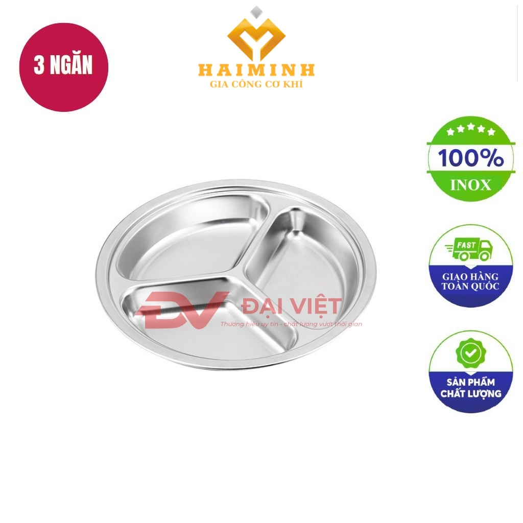 | Đặc điểm nổi bật | – Chất liệu Inox 304 cao cấp, an toàn thực phẩm, chống gỉ sét, sáng bóng, không bám mùi. – Đường kính 26cm, cao 3.5cm, độ dày 1mm, phù hợp khẩu phần ăn tiêu chuẩn. – Ba ngăn tiện lợi, phân chia thực phẩm rõ ràng, tránh lẫn mùi. – Gia công CNC với các cạnh bo tròn kỹ lưỡng, an toàn khi sử dụng. – Thiết kế tinh tế, chắc chắn, dễ vệ sinh, sử dụng lâu dài không cong vênh. – Bảo hành chính hãng 12 tháng. |