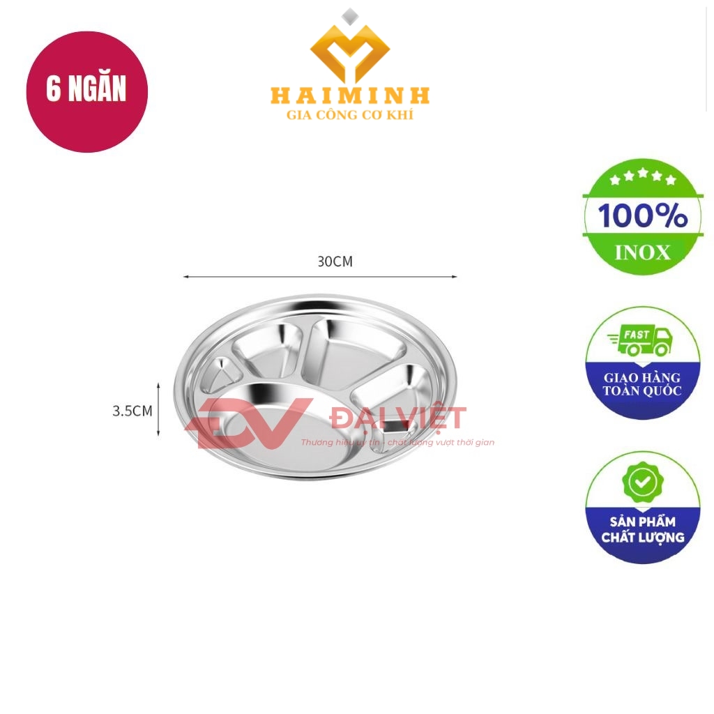 Khay inox tròn 6 ngăn 30×3.5cm, làm từ inox SUS 304. Được chấn dập CNC, bền và đẹp. Với 6 ngăn tiện lợi, khay an toàn cho sức khỏe. Khay thích hợp để đựng cơm và thức ăn cho gia đình, trường học, hoặc nhà ăn công nghiệp.