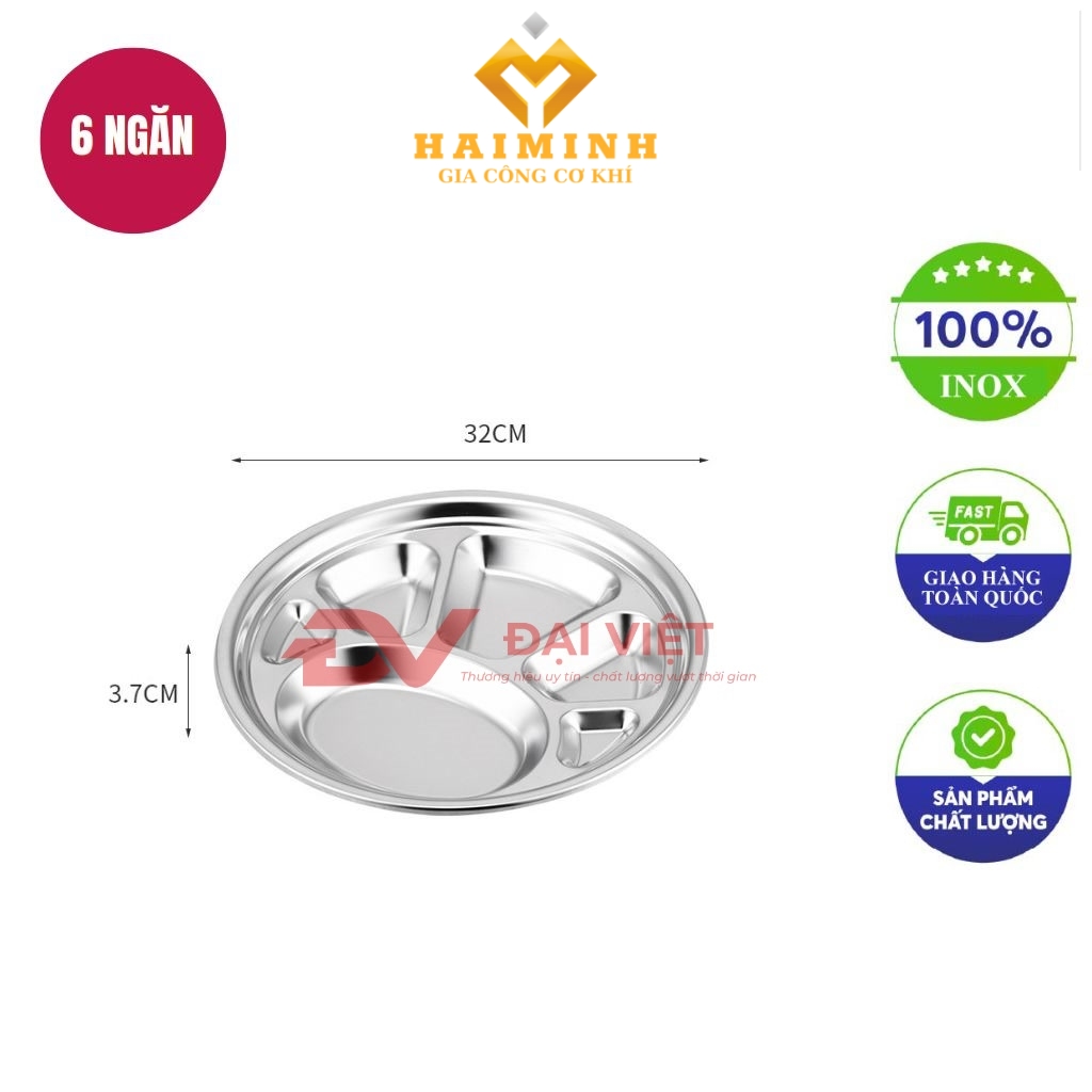 Khay inox tròn 6 ngăn 32×3.7cm với chất liệu SUS 304 cao cấp. An toàn, bền và đẹp. Tiện lợi cho việc chia khẩu phần ăn. Dùng cho gia đình, trường học và nhà ăn công nghiệp.
