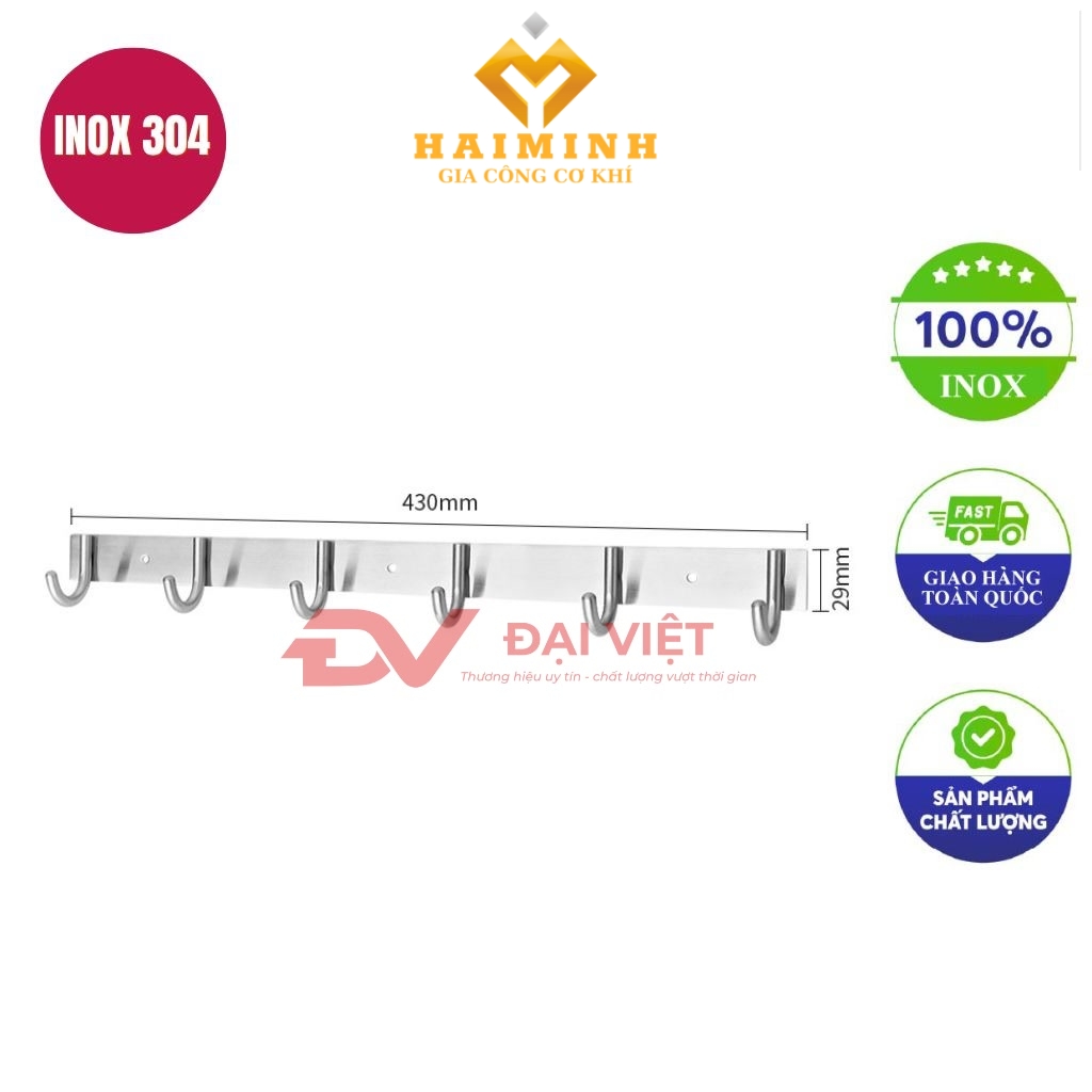 | Tính năng nổi bật | Không han rỉ, luôn sáng bóng lâu dài; thiết kế thẩm mỹ, hiện đại; dễ dàng lắp đặt gắn hoặc dán trên tường; đa năng treo khăn, quần áo, túi xách; an toàn không gây trầy xước quần áo. |