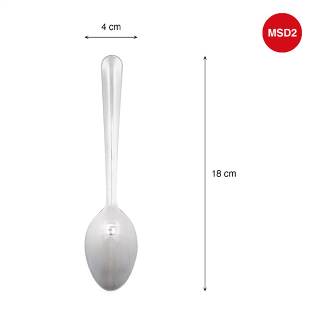 Với chiều dài khoảng 18 cm, muỗng tiện dụng cho các món súp, canh hoặc thức ăn dạng lỏng. Tay cầm dày vừa tạo độ bền chắc vừa mang lại cảm giác cầm nắm thoải mái, giúp thao tác dễ dàng và gọn gàng. Đây là sản phẩm dành cho người dùng cần muỗng inox trơn tiện lợi, bền bỉ dùng trong gia đình hoặc nhà hàng.