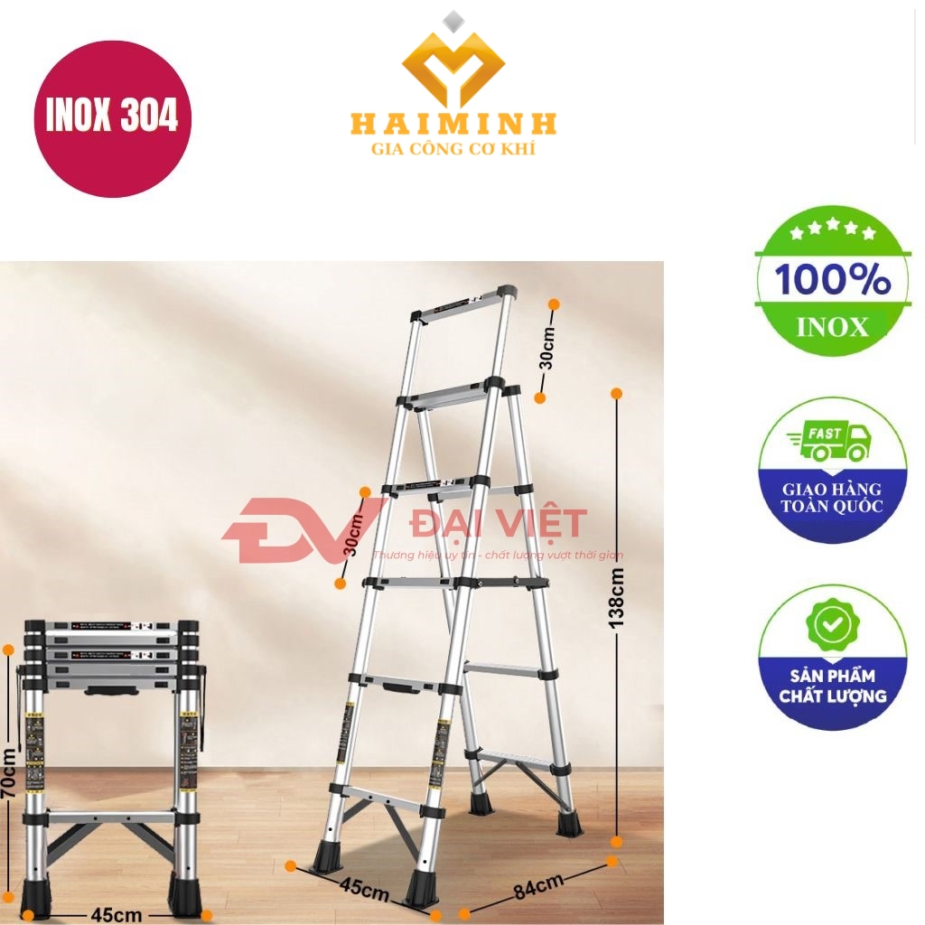 Thang inox 5 bậc dài 2.8m là sản phẩm đa năng. Nó lý tưởng cho việc sửa chữa và bảo trì cả trong nhà lẫn ngoài trời. Với thiết kế hiện đại và khung inox 304 cao cấp, thang này bền bỉ và an toàn. Tiện lợi, gọn nhẹ và thẩm mỹ, đây là lựa chọn hàng đầu cho gia đình và doanh nghiệp.