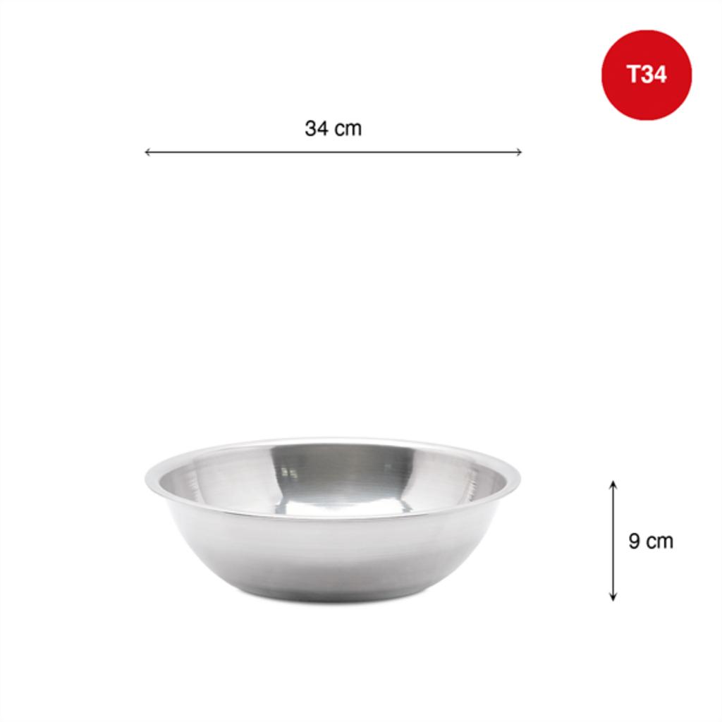 Với size 34, thau inox này vừa đủ dùng trong bếp gia đình, không quá cồng kềnh và tiện lợi cho nhiều mục đích sử dụng.