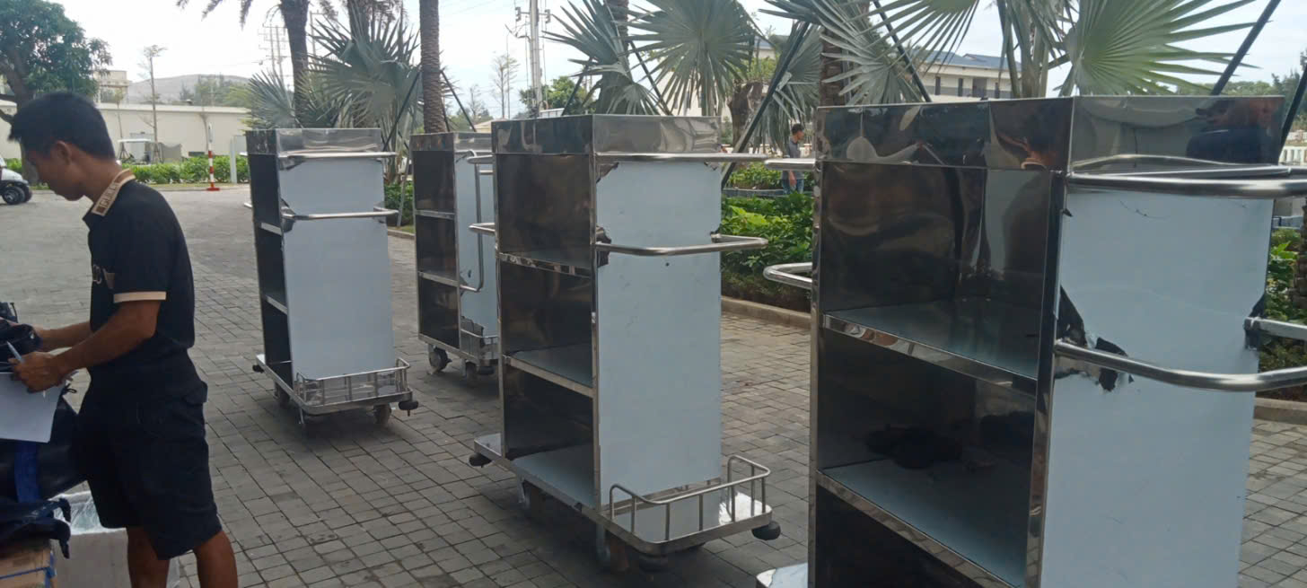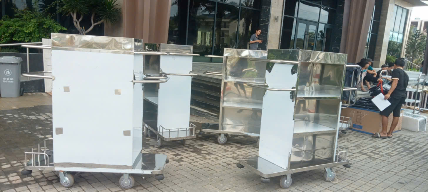 xe đẩy dọn phòng khách sạn được làm từ inox 304