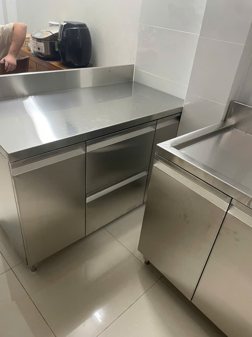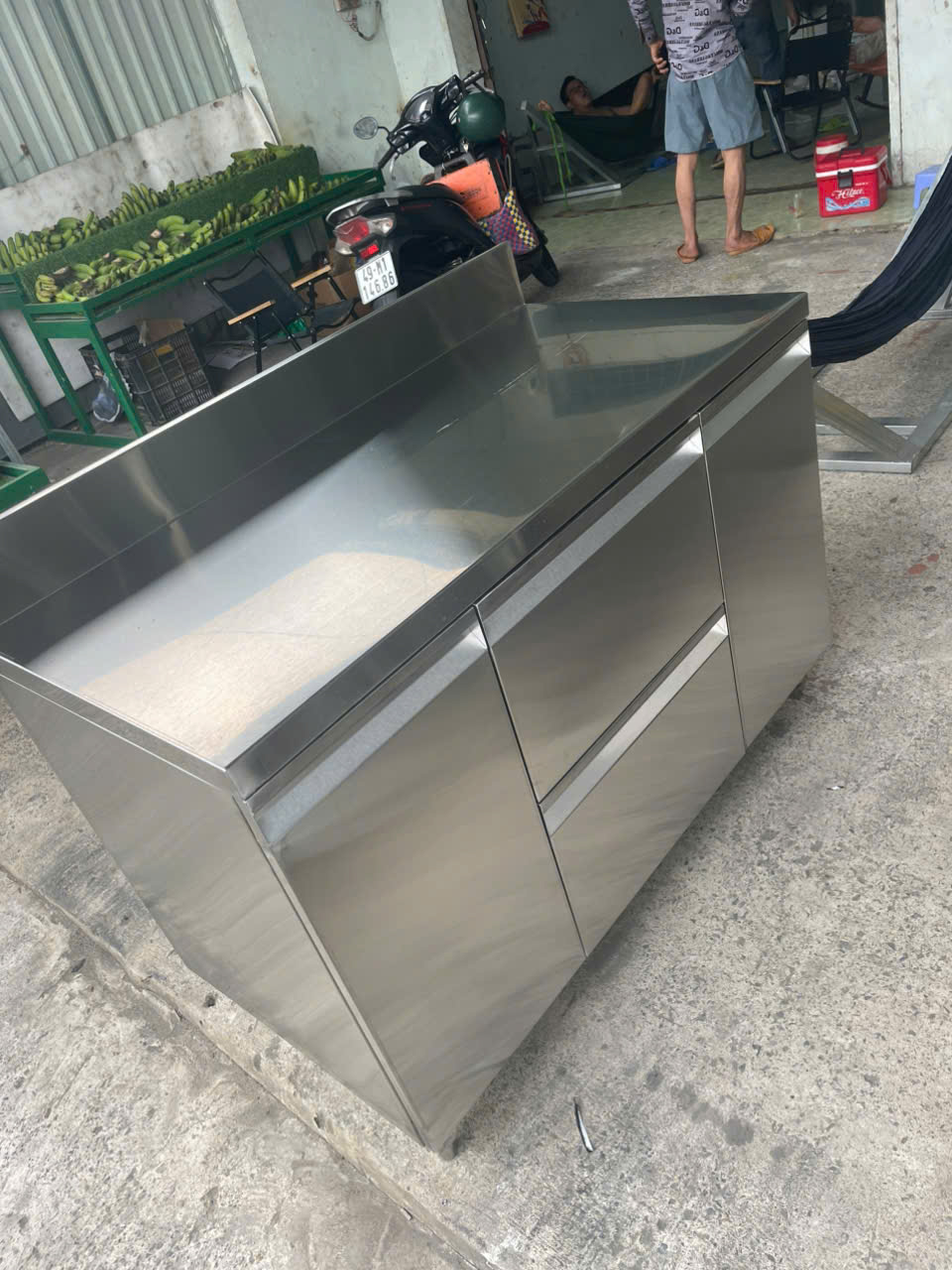 bàn giao tủ bếp inox tích ợp tủ để đồ