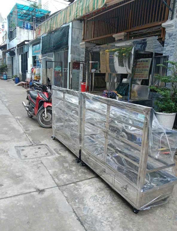 hình ảnh gia công và vận chuyển tủ inox cánh kính