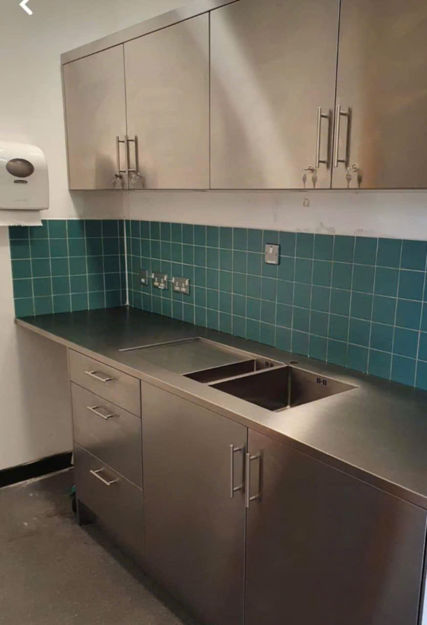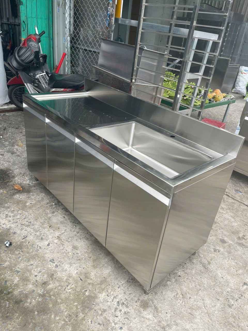 hình ảnh gia công tủ bếp inox tích hợp bồn rửa