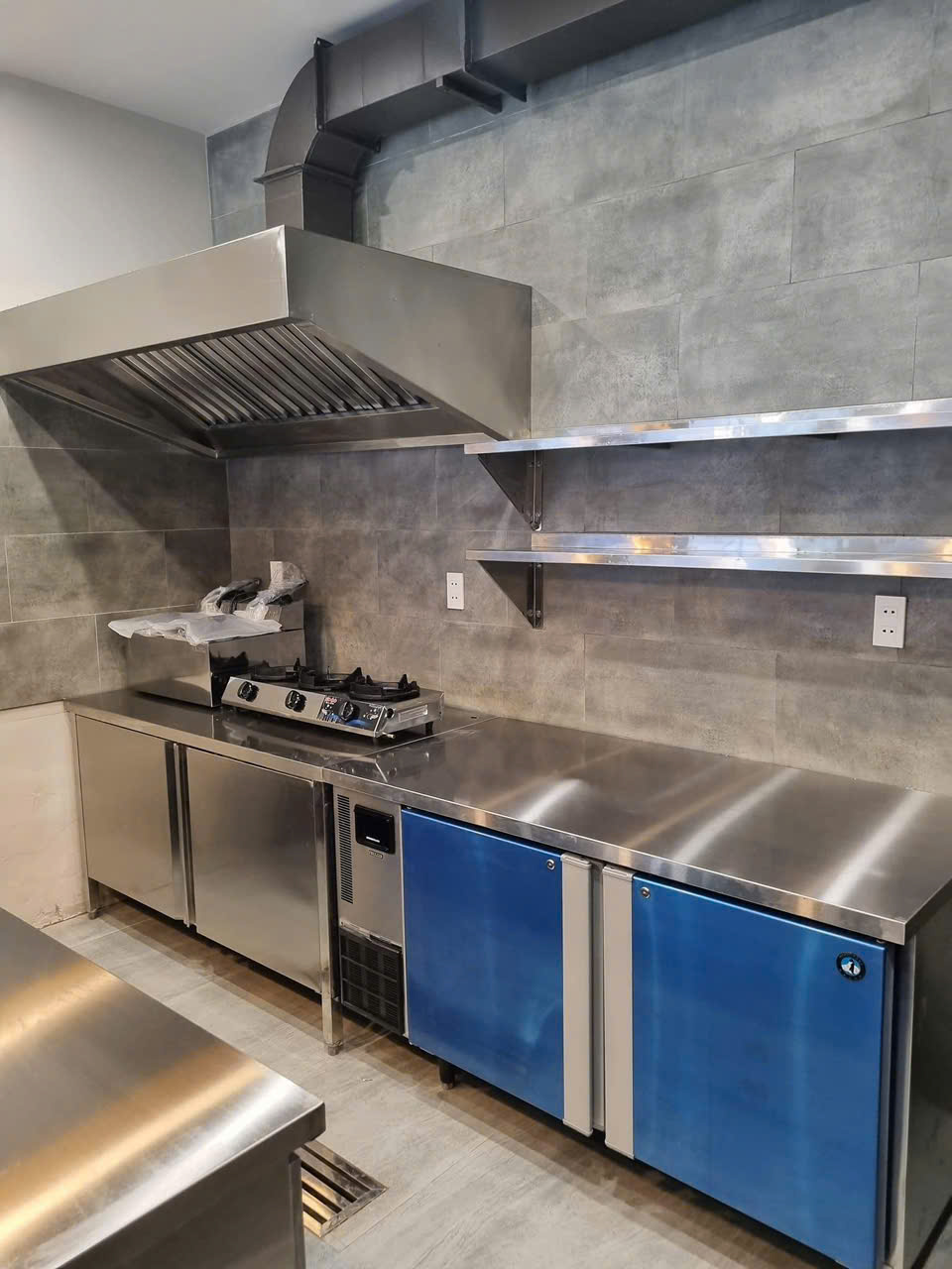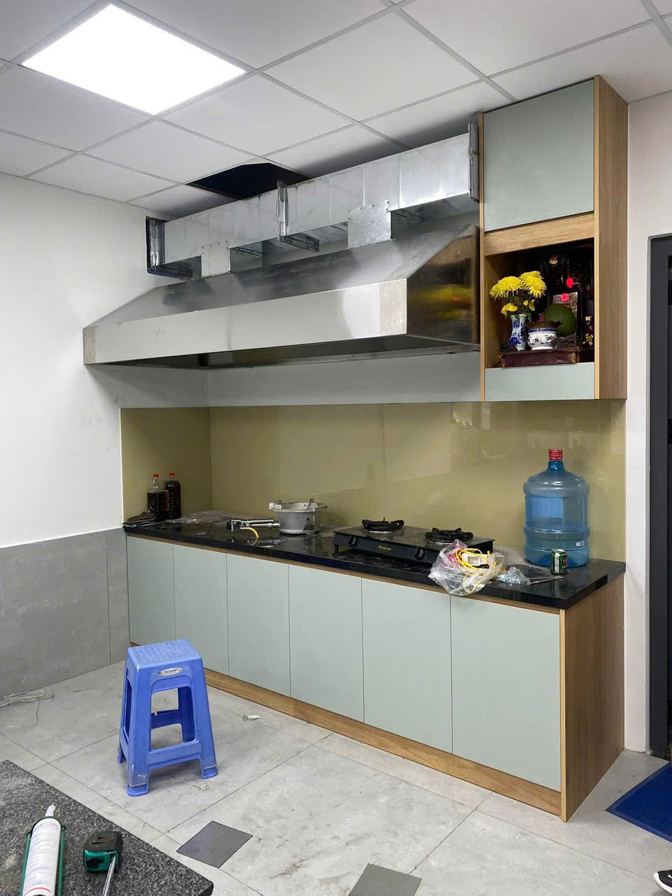 thi công hệ tủ bếp inox và chụp hút khói cho khách hàng
